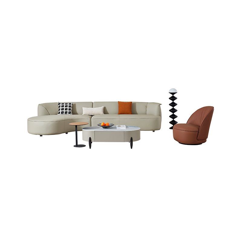 A sofa with smooth lines and unique curved design, which adds a sense of fashion to the space. The generous and simple shape is matched with the comfortable seat and the delicate and skin-friendly leather touch, which brings the aesthetics and practicality of this sofa to the extreme.